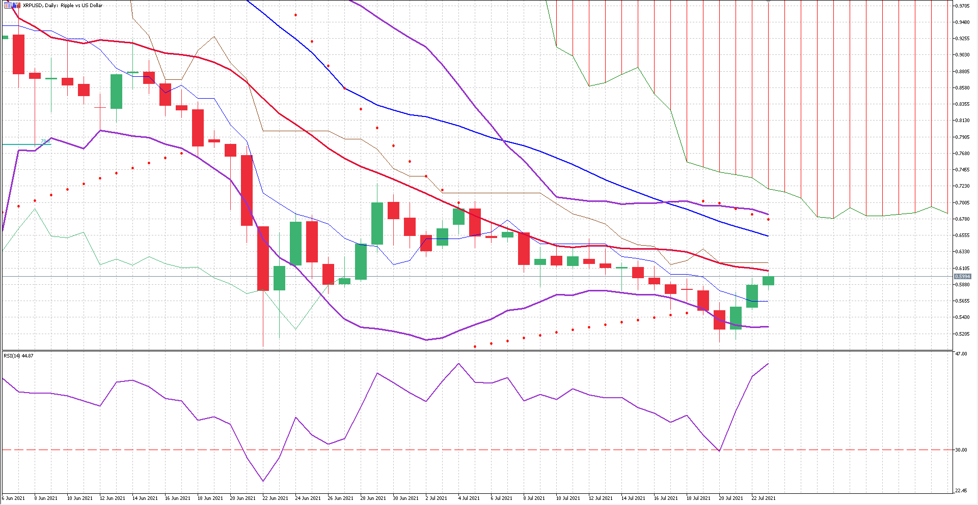 The relative strength index is at 41%, this will allow the pair to move upwards freely, but we could still see the pair fall a few more points before it enters the oversold status and starts recovering. Our parabolic SAR indicator suggests that the pair will continue moving downwards in the short term. The next support level sits at $37,400.