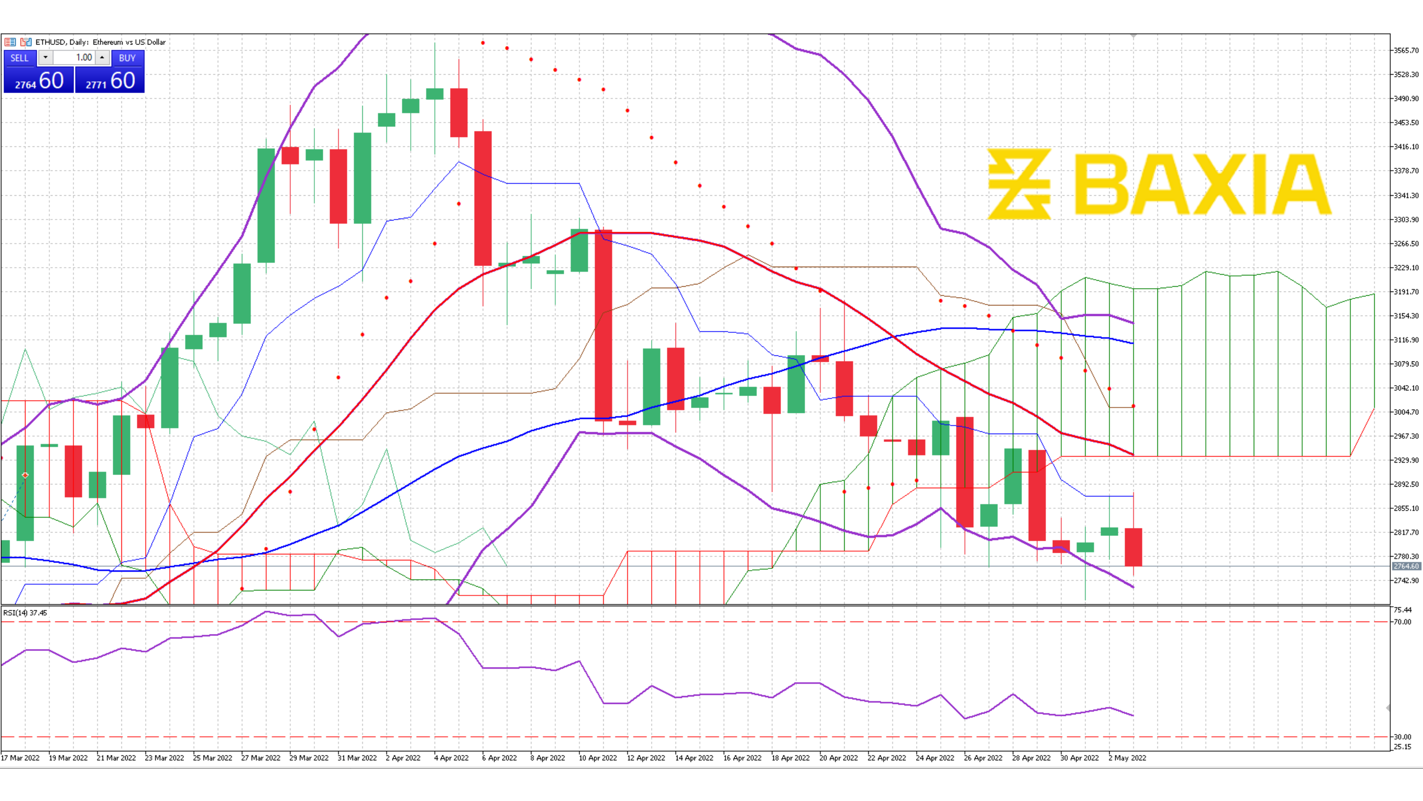 The Bollinger bands are wide enough to expect high volatility in the short term, the pair traded below the lower band, suggesting that the price was relatively low, incentivizing traders to open long positions. The lower band expands more than the upper band, which indicates that the price could still move downwards if the breakout is not completed.