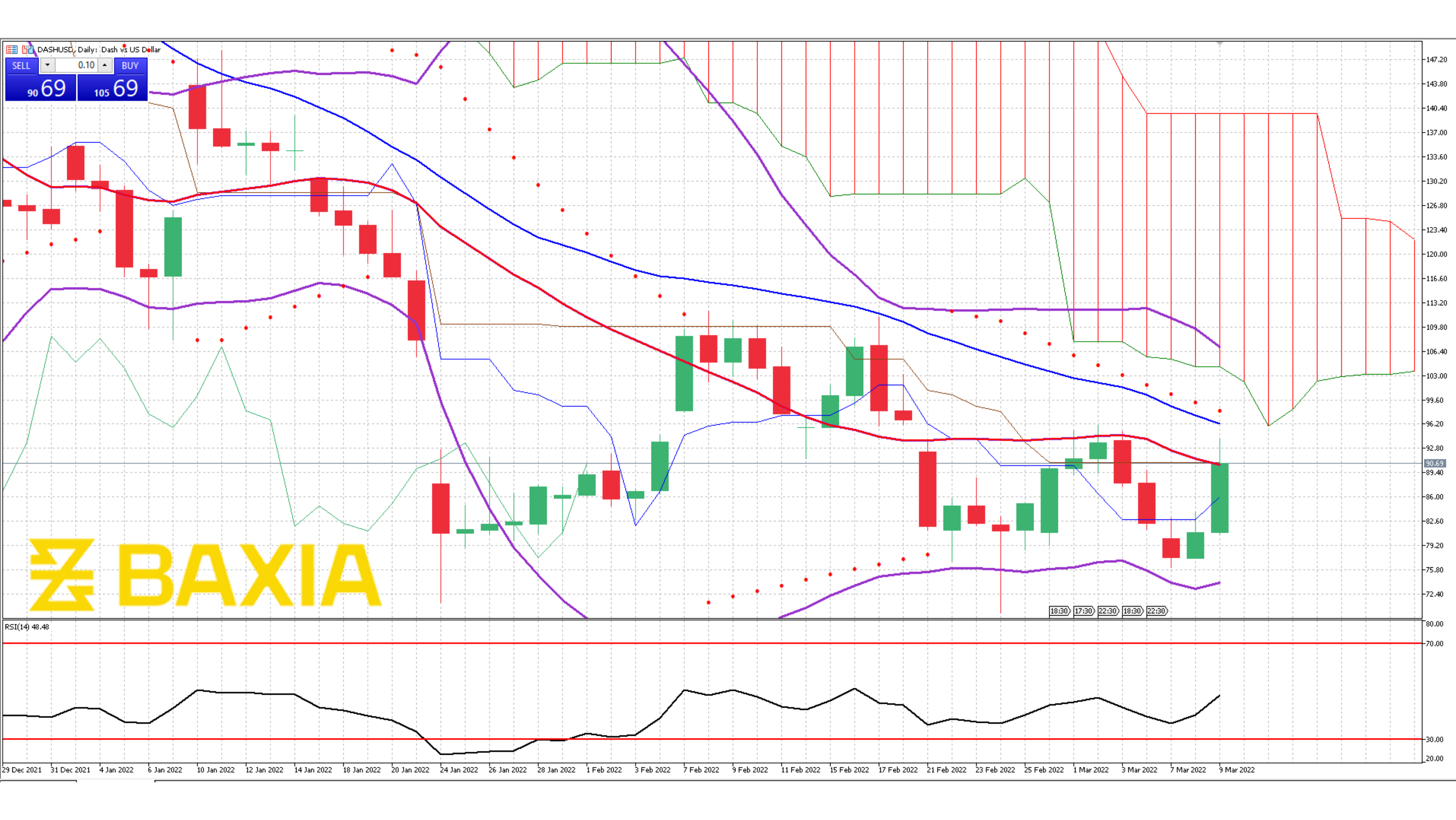 The cryptocurrency continues moving downwards and reached its lowest level since March 8th, we see a slight recovery of less than 1%, which could be the beginning of the end of a downtrend if the price is able to find support at $91.62.