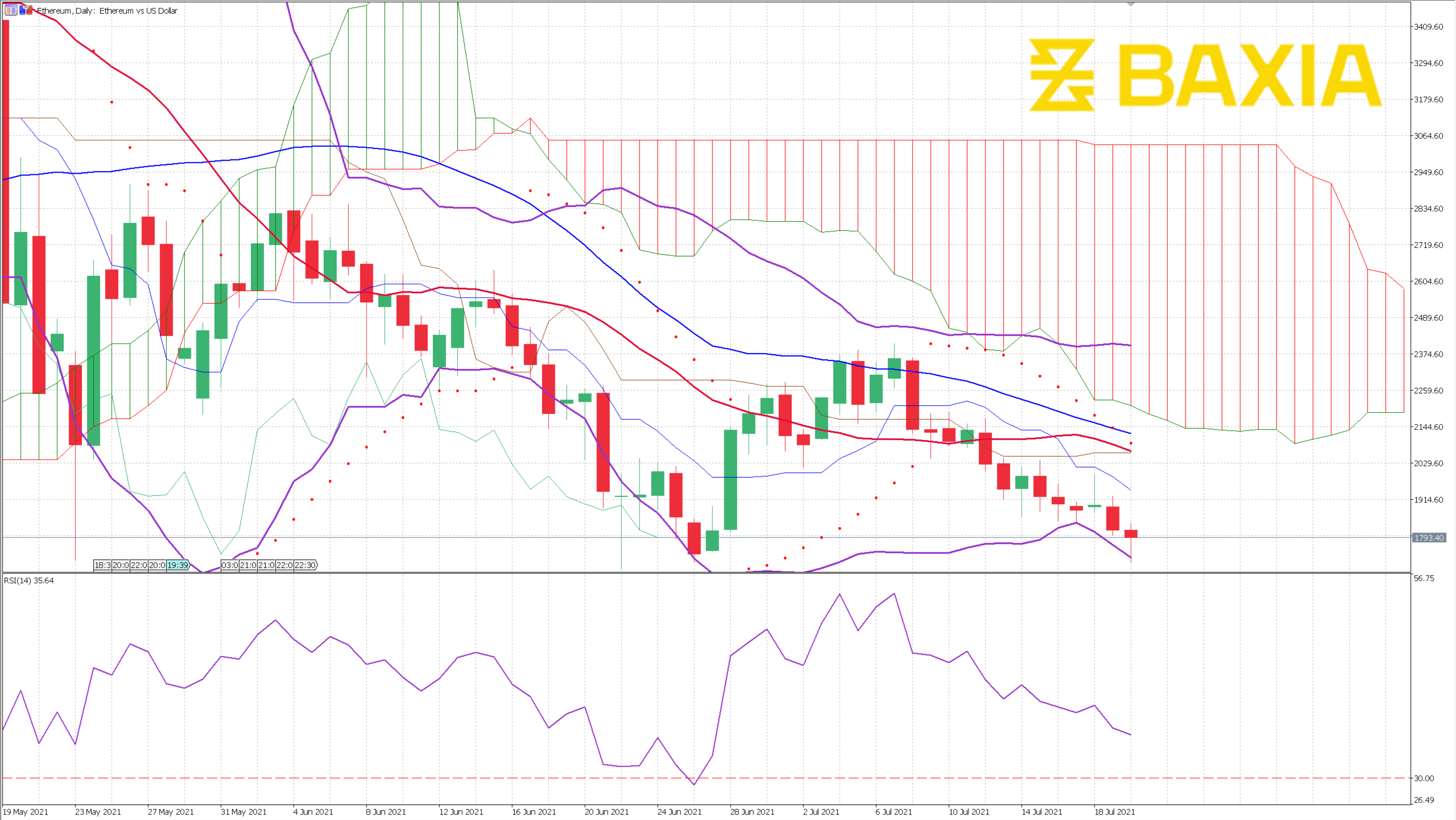 The cryptocurrency continues its consolidation period and is unable to go above the $1,900 price level or below $1,700. The price is currently below the short and long-term moving averages suggesting that the downtrend is likely to continue; however, the support at $1,700 has proven to be strong enough to hold the price from sinking.
