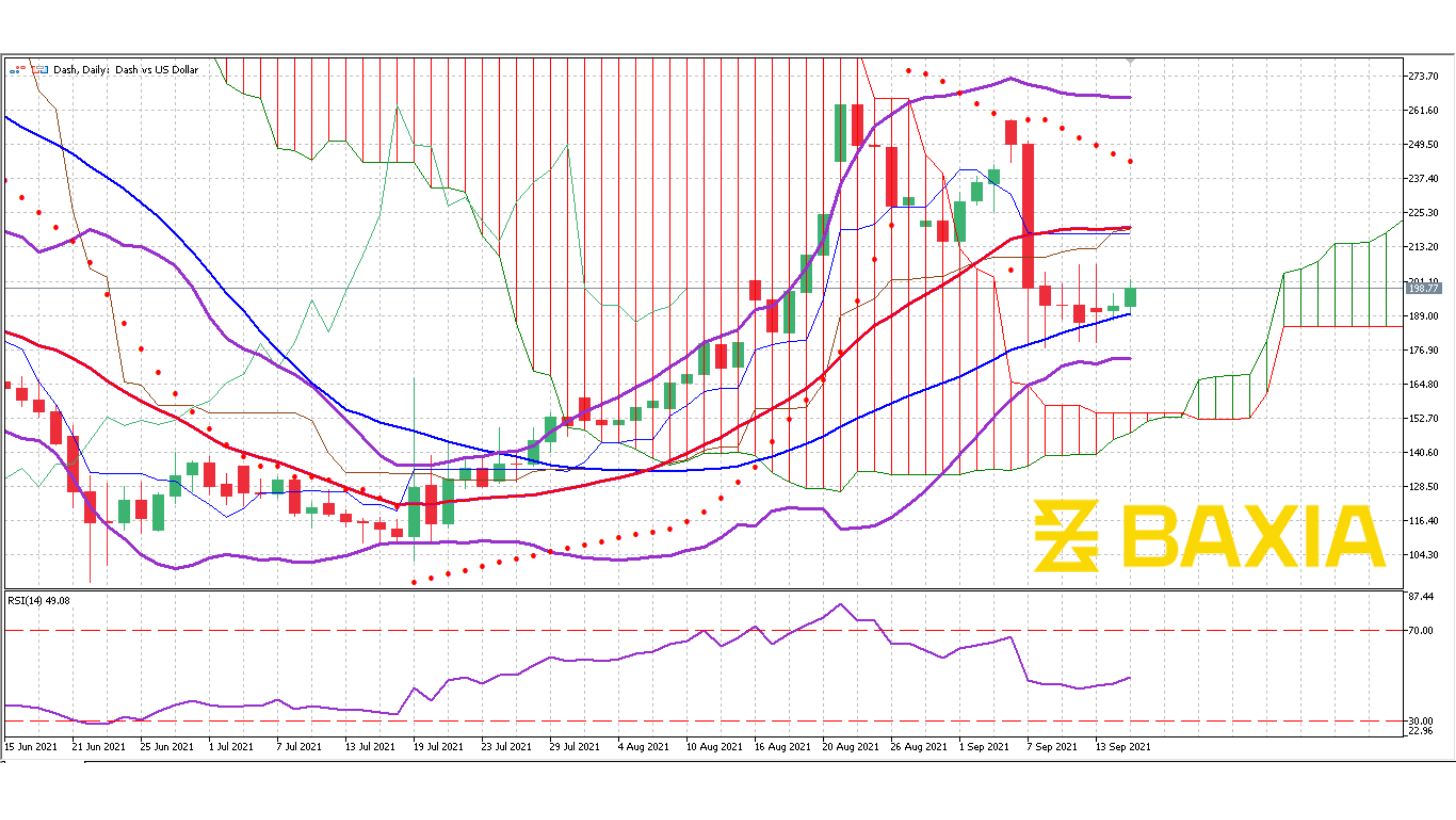 The relative strength index is 39% and never entered the oversold status; however, the support from the lowe Bollibger band stopped the fall and could start a recovery in the short to mid-term. The current RSI level will allow the price to continue climbing freely for a while before entering the overbought status.