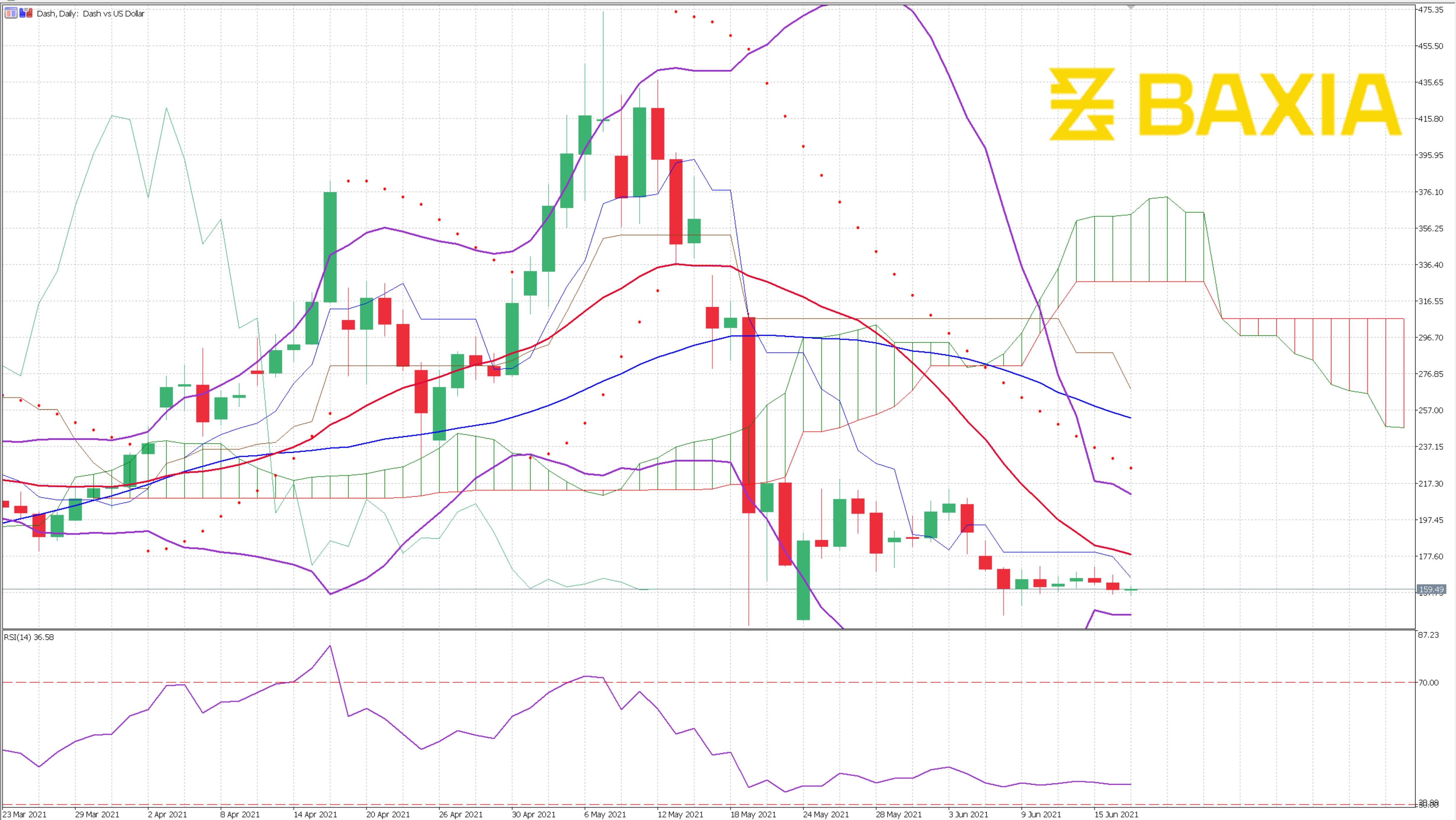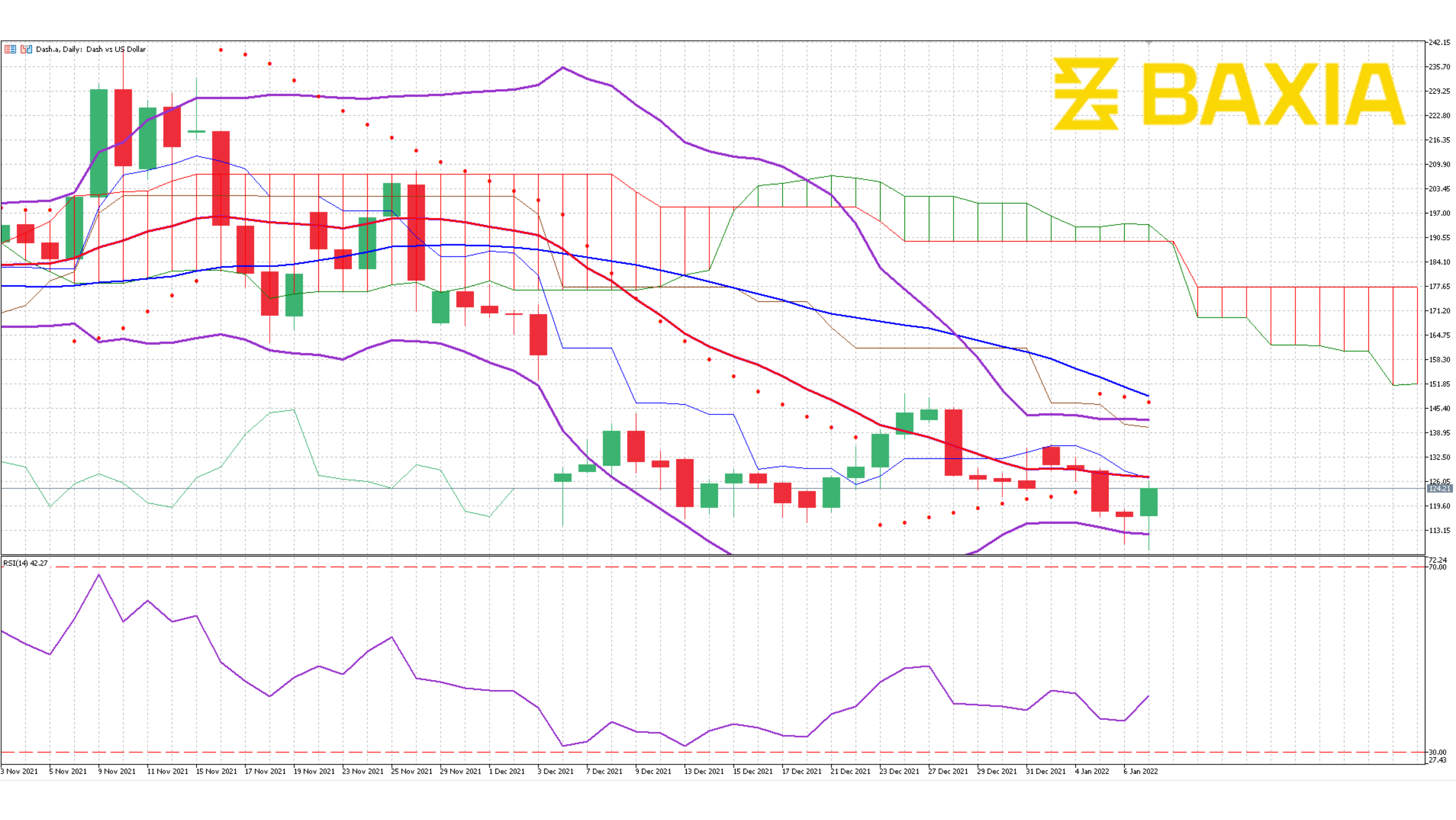 The relative strength index is at 19%, the lowest its been since January 2022. This could potentially stop further losses in the short term as the pair is already way oversold, but we have seen Ethereum stay below 30% for a few sessions before it starts recovering. Our parabolic SAR suggests that the price is likely to continue moving downwards.