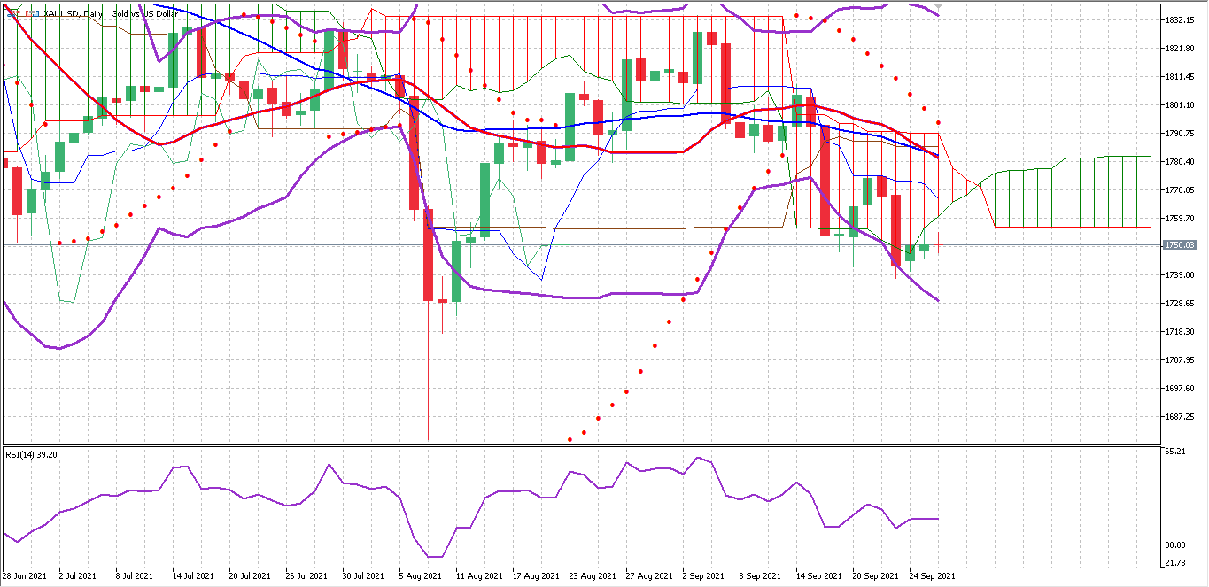The precious metal broke the 50% Fibonacci retracement at the $1,796 level, ending a three-day losing streak, if the breakout is completed we could see the price continue climbing in the short term, it will enter the Ichimoku cloud and that will create market uncertainty.