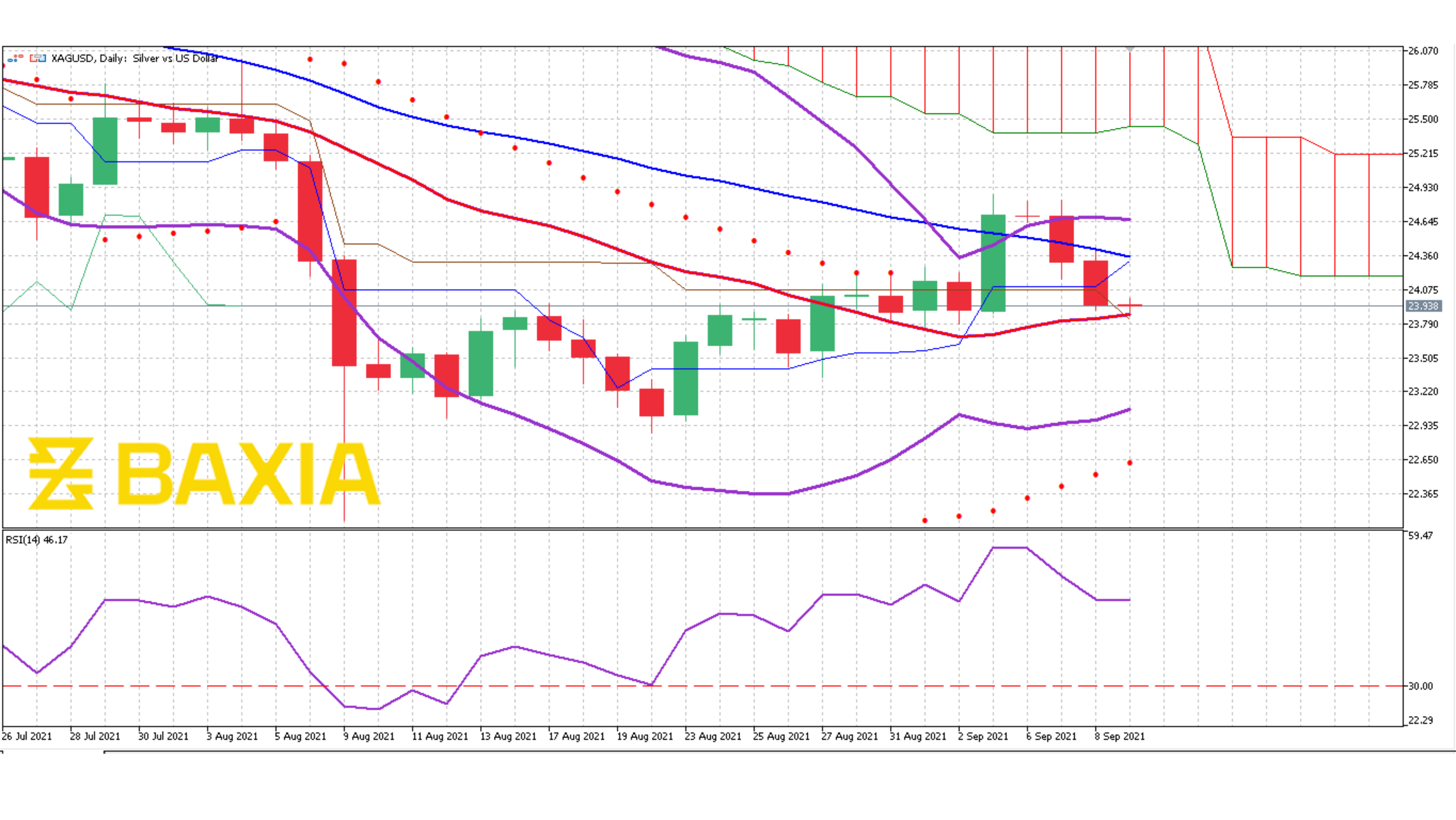 The relative strength index is at 34%, which will also allow the pair to move downwards a bit more before entering the oversold status, at which point we would expect the price to bounce. Our parabolic SAR indicator suggests that the price will continue to move downwards in the upcoming sessions.