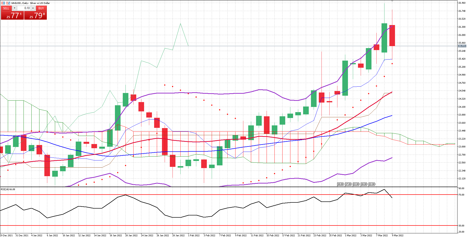 The Bollinger bands are opening up aggressively, which would allow the price to continue the uptrend but not very aggressively as the upper band would restrain the price from going any further. The pair trades closer to the upper band, suggesting that the price is relatively high, there is still some room tho.