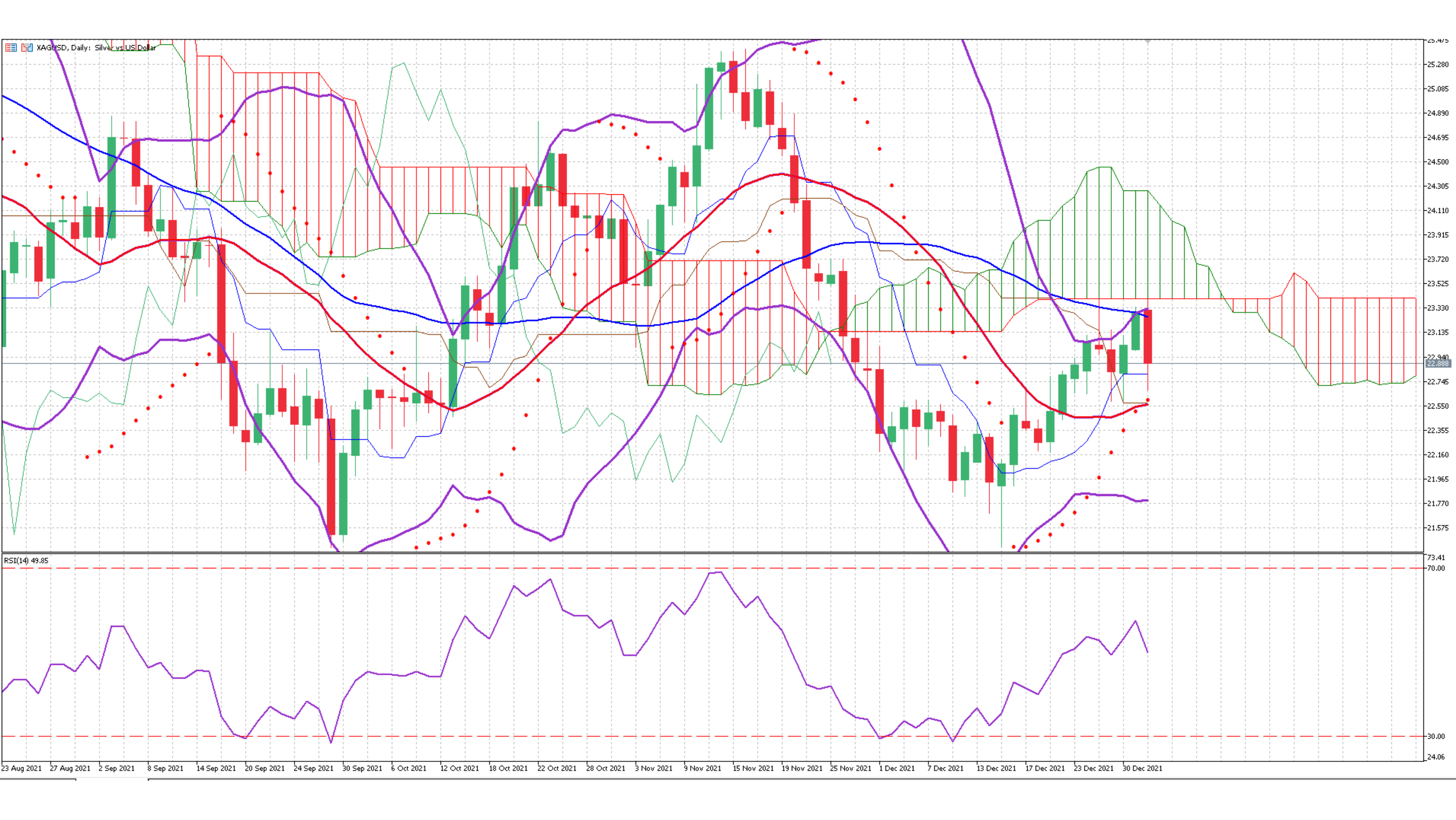 The relative strength index is at 54% which will allow Gold to continue moving up in the upcoming sessions, once it gets closer to the overbought status we might start seeing temporary pullbacks. Our SAR indicator suggests that the price will fall in the short term, but most technical indicators suggest the opposite.