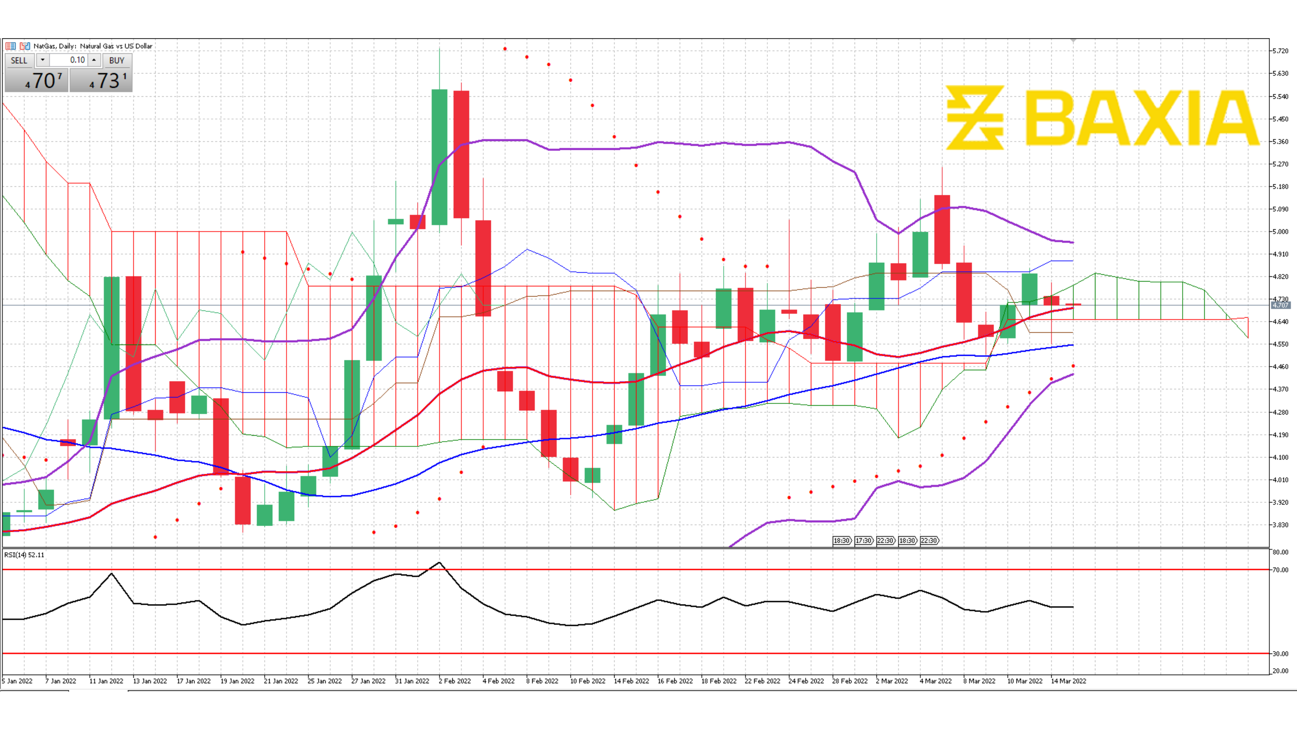 The relative strength index is at 53% which will give Natural Gas enough room to climb and potentially complete a new possible breakout. The price traded above the short and long-term moving average which often indicates an uptrend, however, we still have to wait for them to cross to get a trend reversal signal.