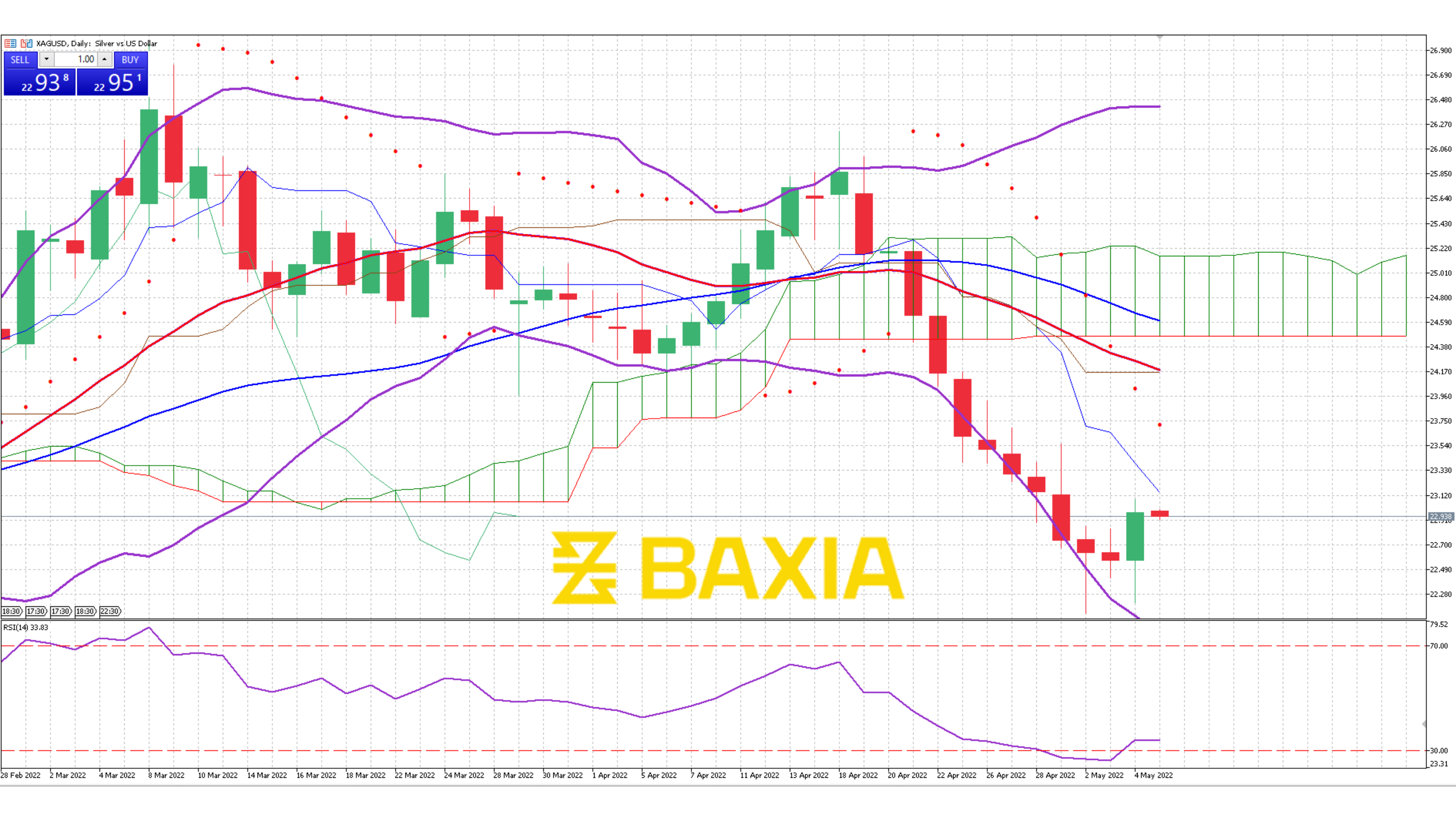 The relative strength index is at 27% which is oversold, perhaps one of the reasons we are seeing a small recovery is precisely the current status of XAGUSD. The resistance level is at 22.384 which is not too far from the current price. Investors might see this as an opportunity to buy the metal at a low price, which will likely boost the pair.