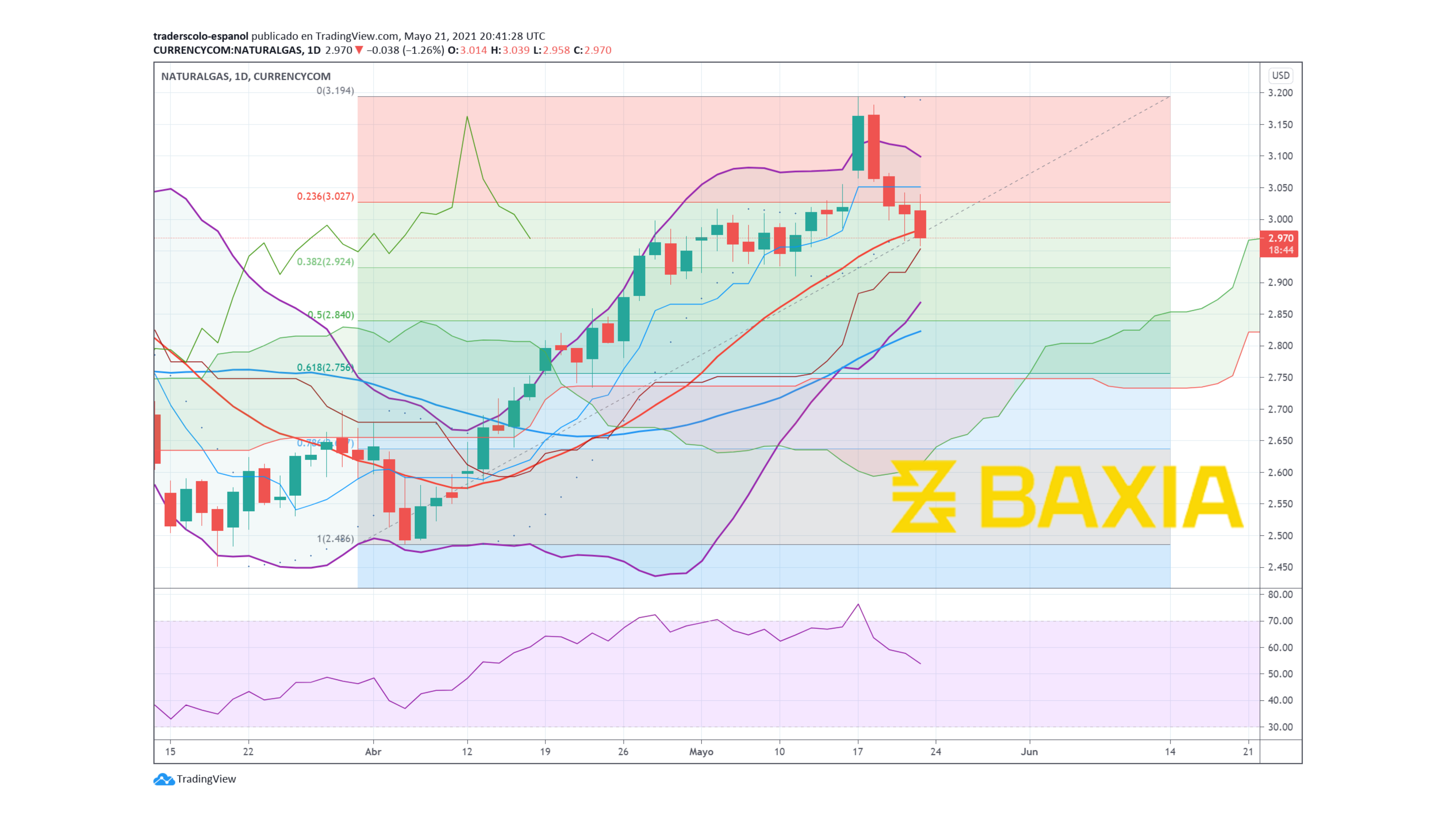 The relative strength index is at 79%, it continues being on an overbought status, which could last a few more trading sessions, the RSI is falling slightly as the price drops, the fundamental elements continue creating a high impact on the price of the commodity and will continue to do so for as long as there is uncertainty with the production and a possible shortage.