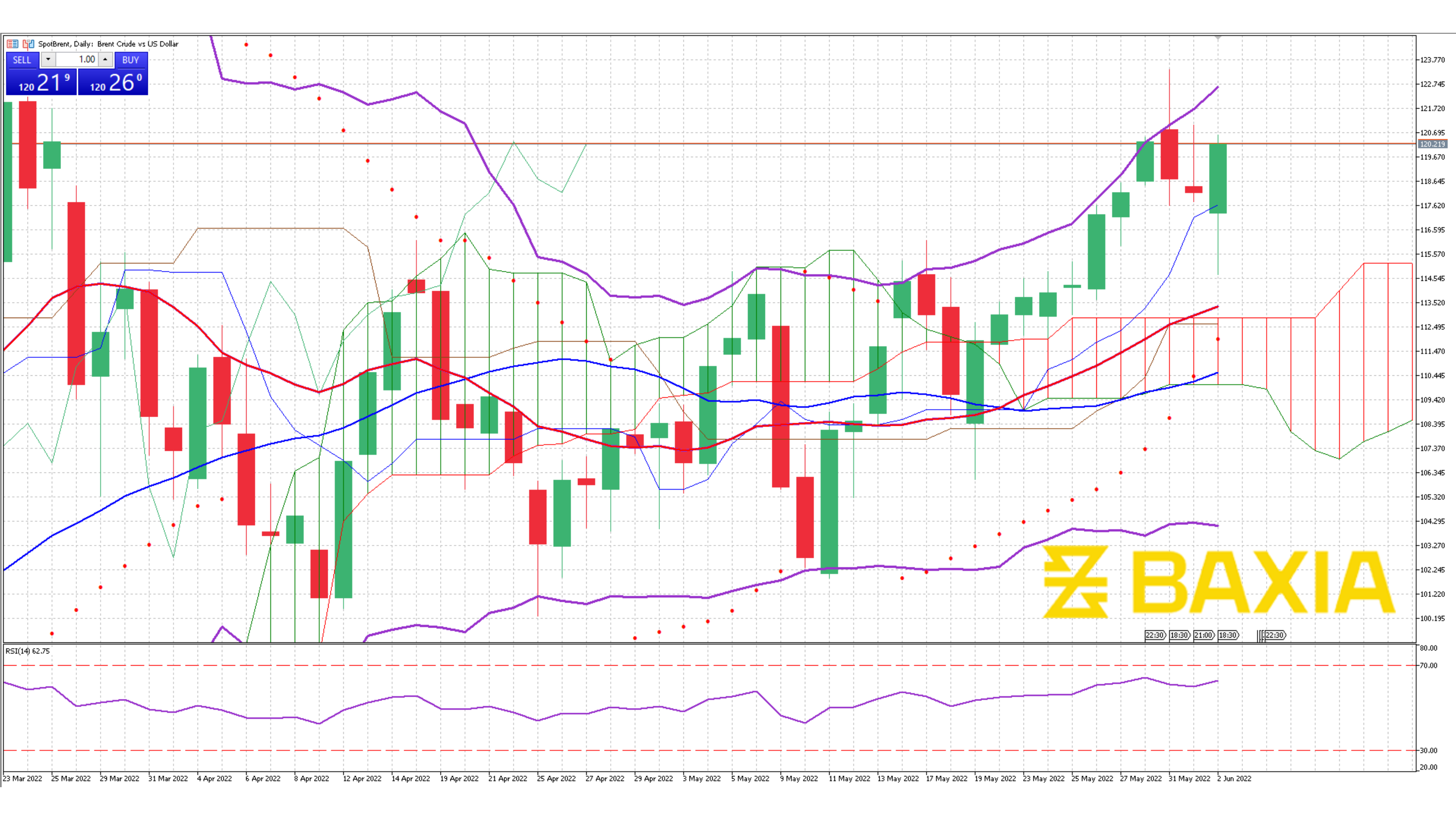 The energy commodity continues moving upwards and could reach $123 in the upcoming sessions. The pair trades above the short and long-term moving averages strengthening the uptrend signals.
