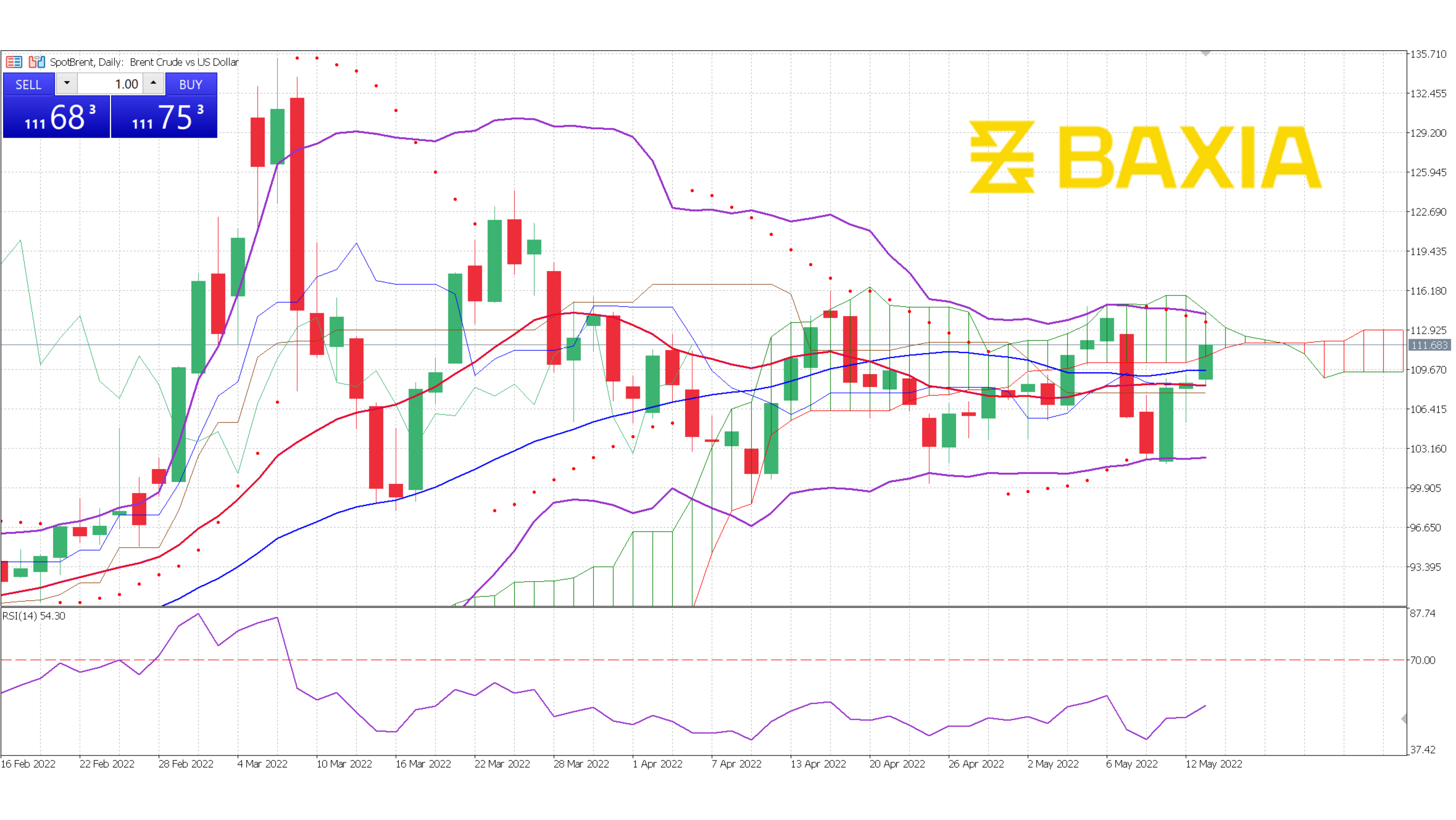 The price now trades below the short and long-term moving averages, suggesting that a downwards trend is expected to continue in the short term, West Texas Intermediate is likely to find support at the 61.8% Fibonacci retracement at $105.19 and we could see the price rebound in the medium term.