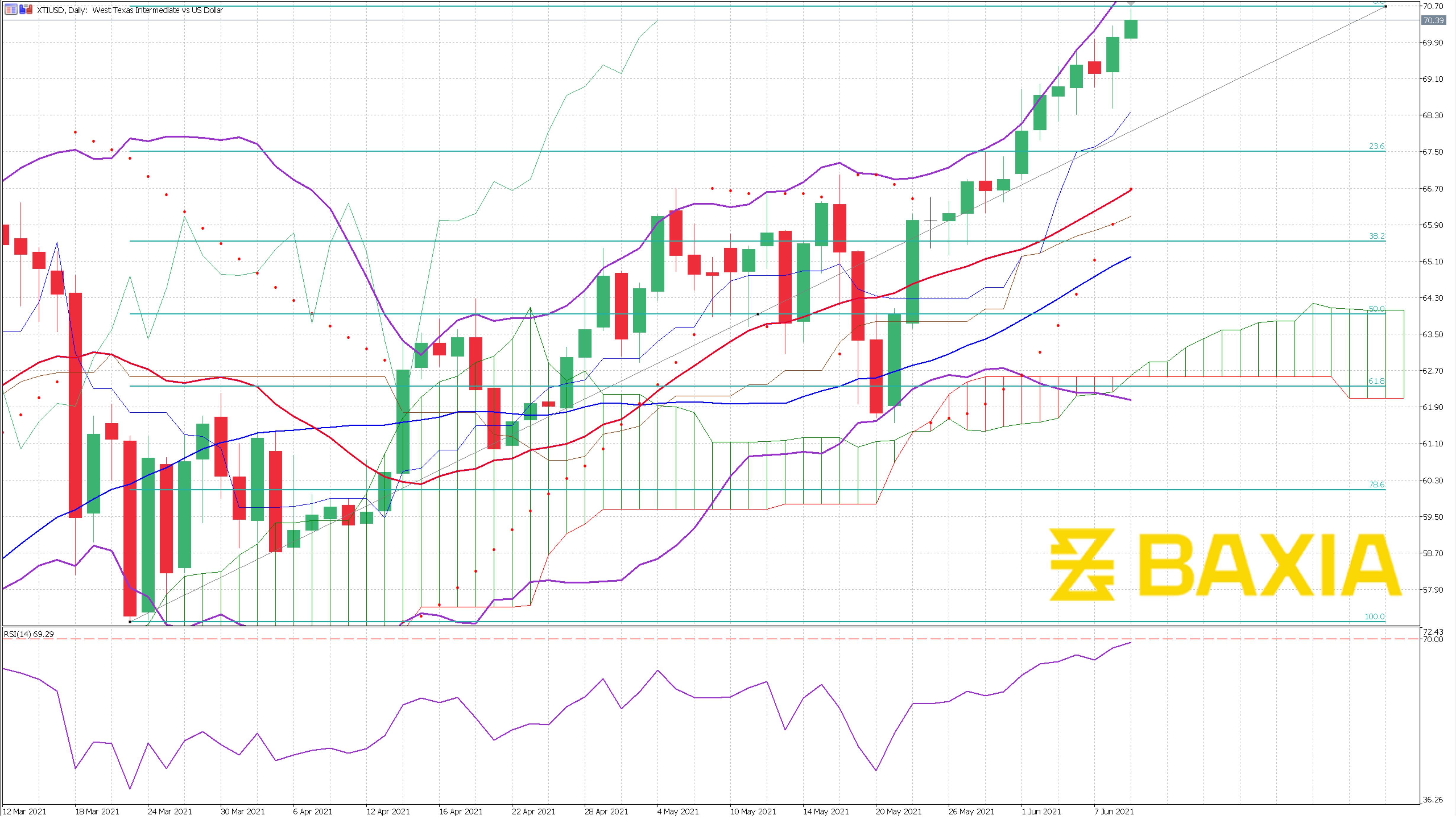 The energy commodity continues diving and broke two support levels from our Fibonacci retracement, the next support level is at $91.85 as the pair continues the downward trend it could stabilize around that price level.