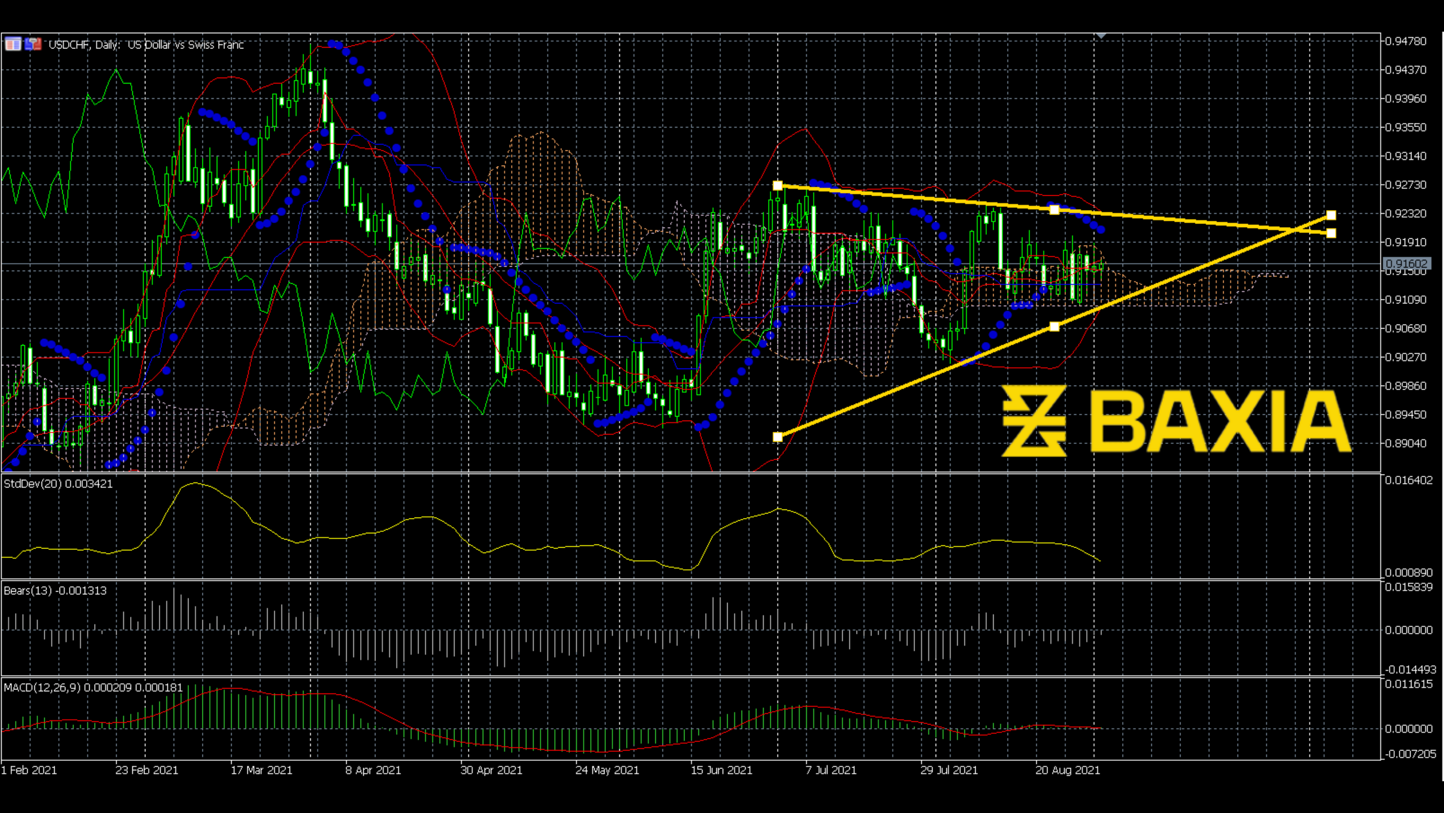 The pennant pattern is always considered a breaking signal, however, in which direction could the price go? Usually, the old trend, which was the trend before the pennant pattern, could be the direction for the breaking direction. So, according to the previous trend, the price could break out from the upper line. The MACD just made a bullish cross. Also, the Stochastics are going up rapidly, however, the Stochastics are about to touch the overbought area, and this could be a concern.