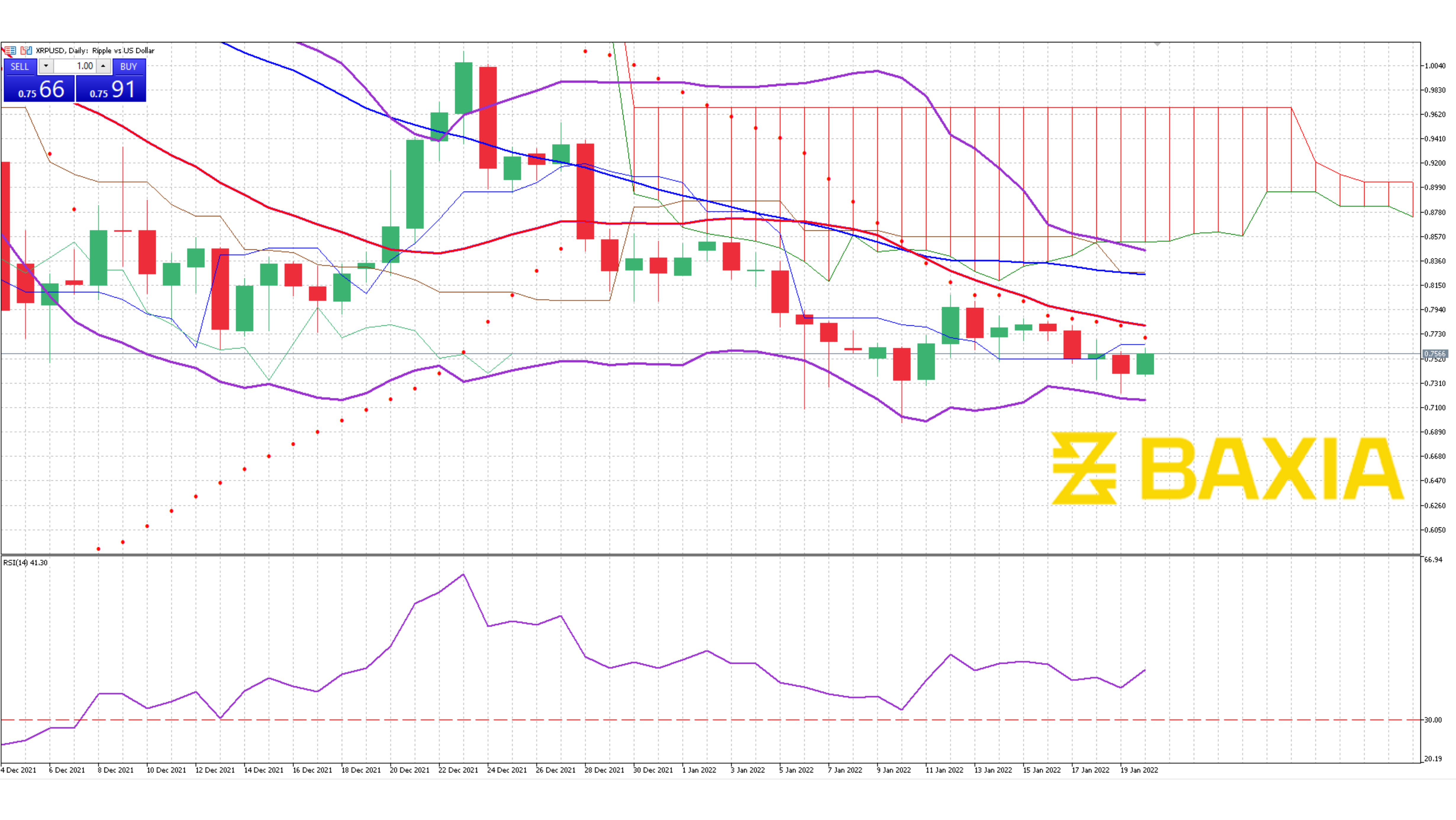 The Bollinger bands are closing up as the price continues consolidating around the $0.735 price level, this is likely to bring lower volatility in the upcoming days, but it also means that a breakout is closer, we have yet to see which direction is more likely to go by checking other technical indicators in the upcoming sessions.