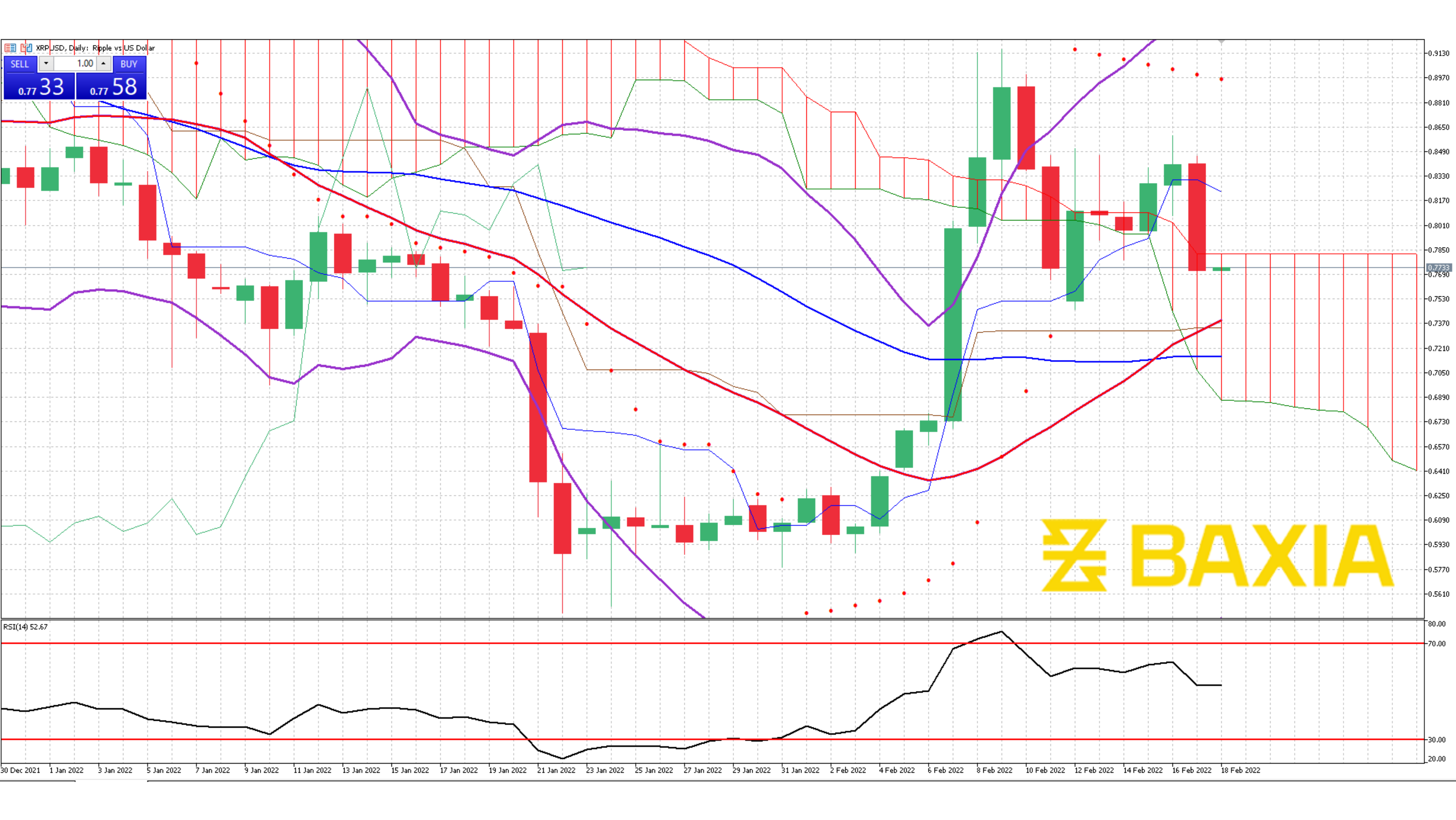 The cryptocurrency lost more than 6.7% in 5 out of the last 6 trading sessions, the pair managed to break the support level on our 38.2% Fibonacci retracement at $0.76894 and is getting very close to the next support at $0.73542 on the 23.6% retracement. The short and long-term moving averages crossed in mid-April, suggesting that the downtrend would continue, which has been the case so far.
