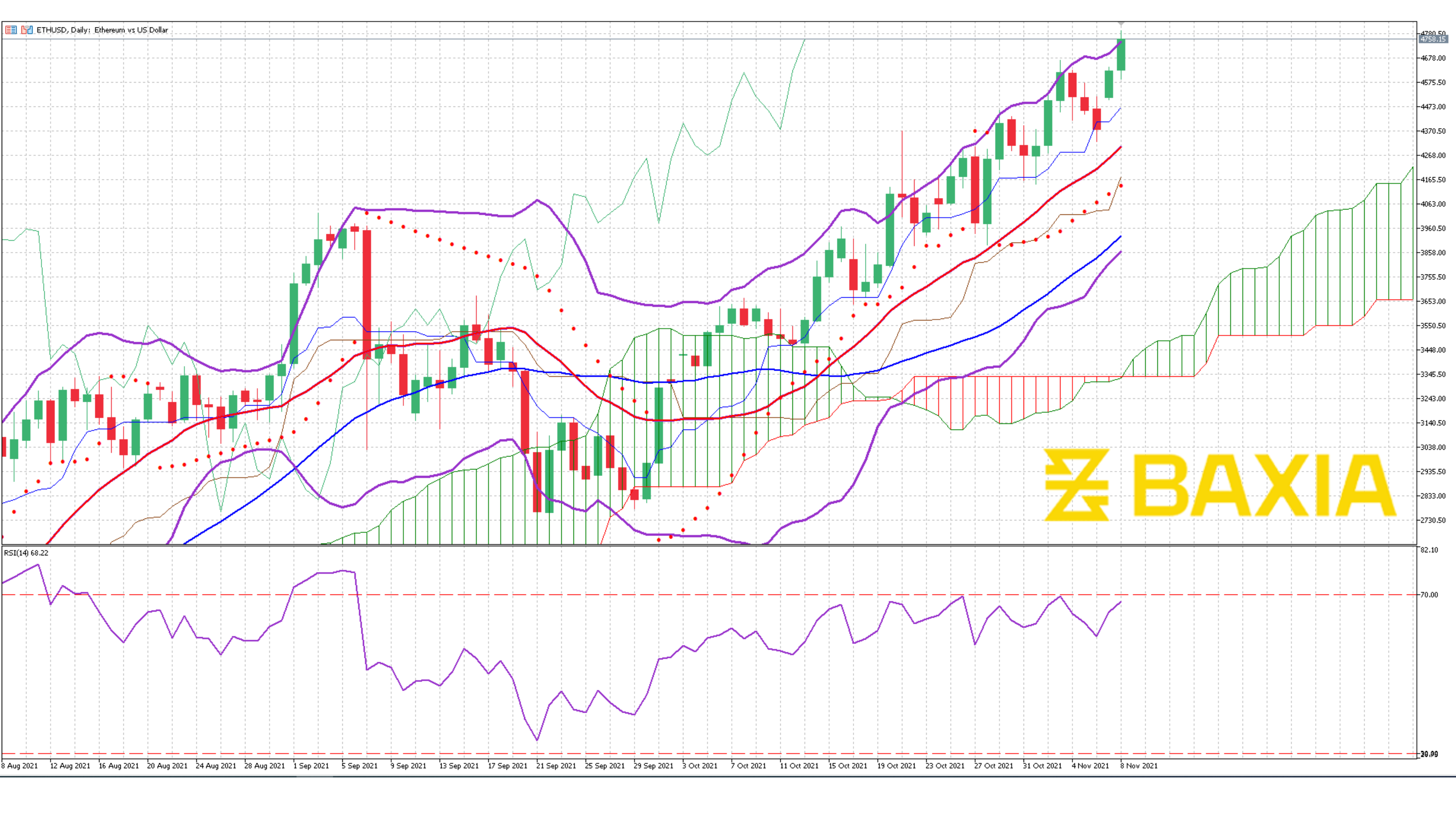 The relative strength index is at 67% just recovering from an overbought status at 76%, the price would need to pull back a few points in order for the uptrend to continue in the medium term.