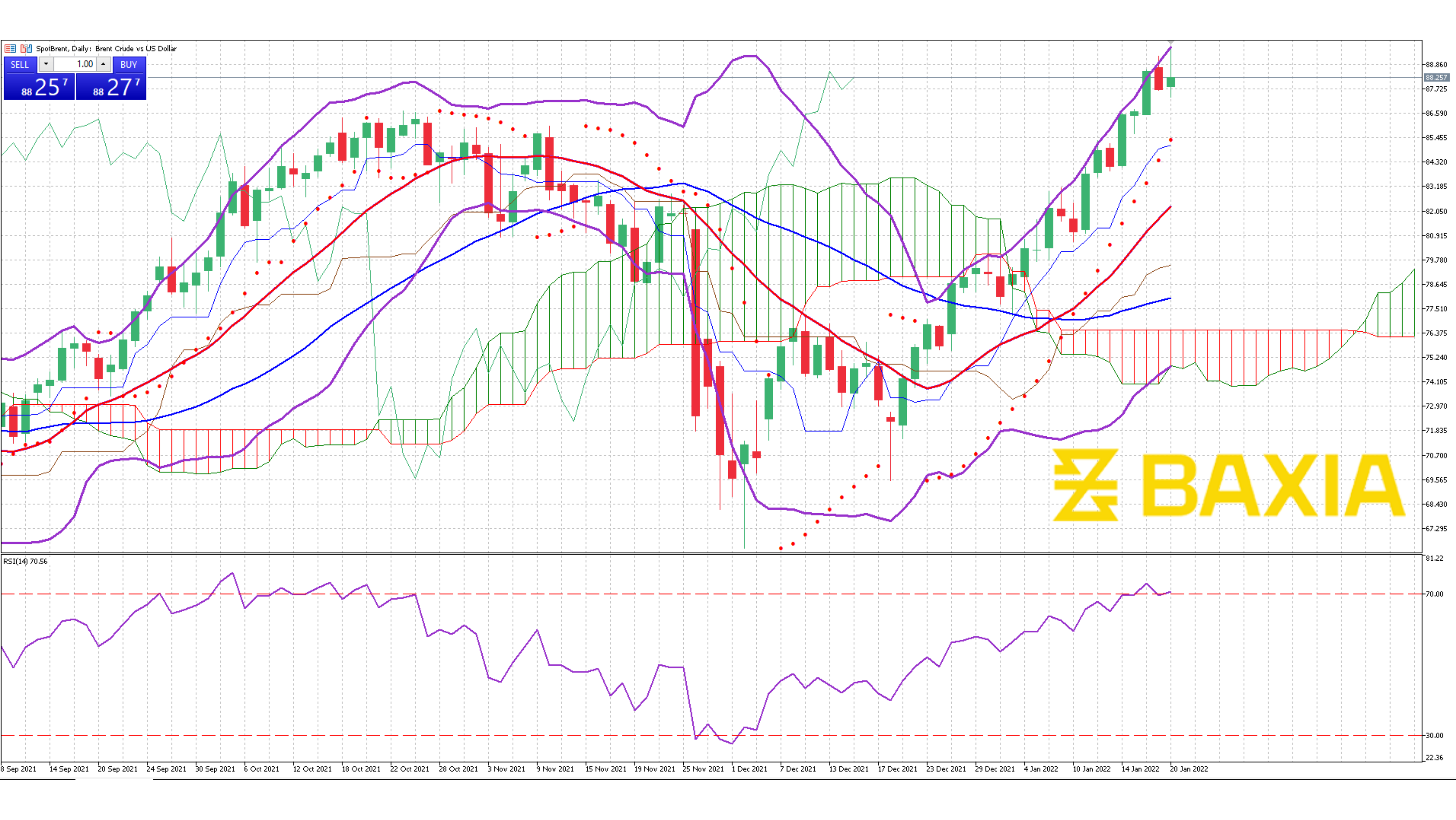 Our parabolic SAR indicator suggests that the uptrend will continue, but a pullback is almost imminent based on other technical indicators. US oil has reached a level that some consider not sustainable in the short term. It has climbed very fast in the last three months, gaining more than 23%.